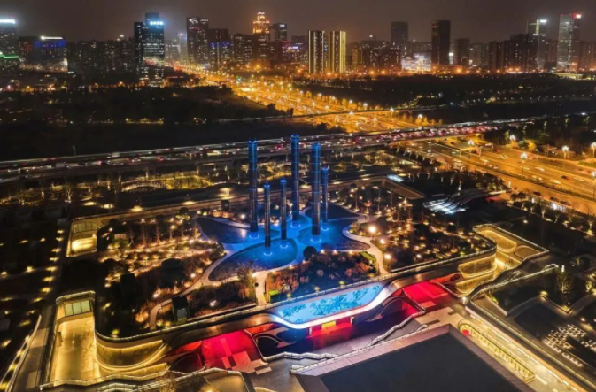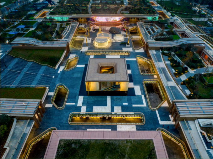 成都SKP项目地面为公园景观层。其中的景观以织锦艺术为灵感,绿化覆盖率约70%,打造33个极具特色的景点,超1300个全球一线品牌,品牌量级堪称西南最高,其中包含222个首店品牌,为游客提供一个可以漫步放松、拍照打卡、享受自然的生态空间。