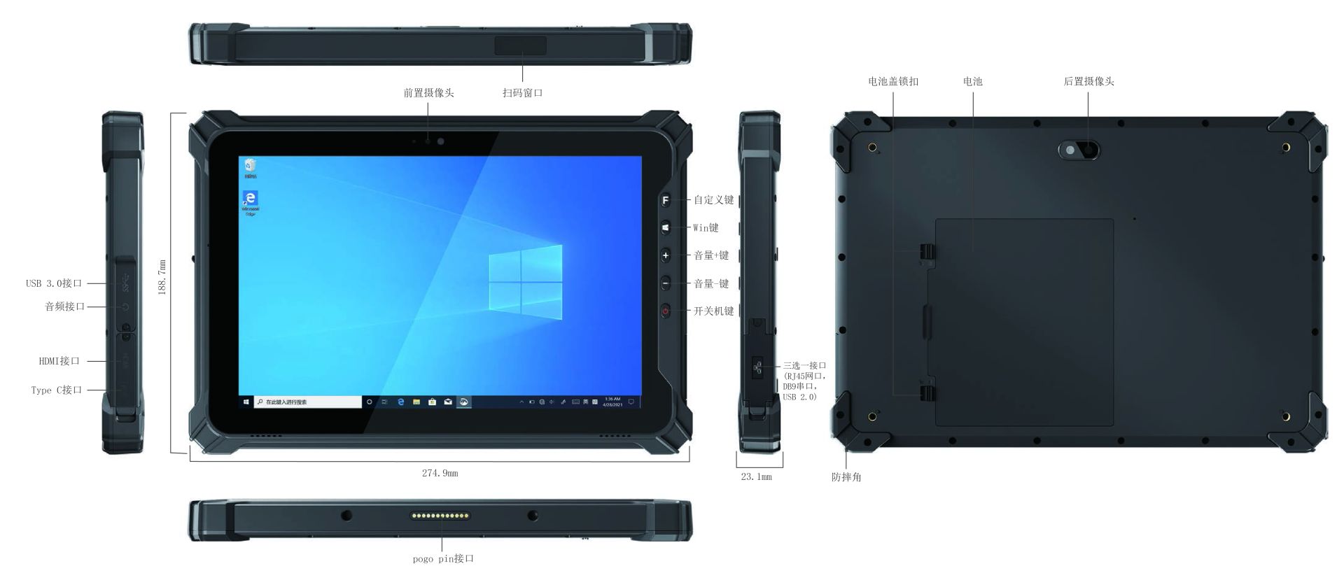 - 电池可拆卸,Type-C接口即使在无电池状态下也能为平板供电